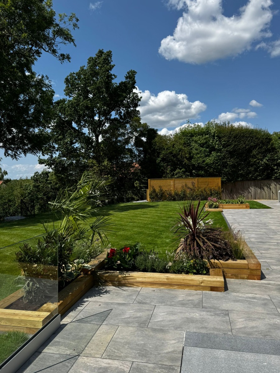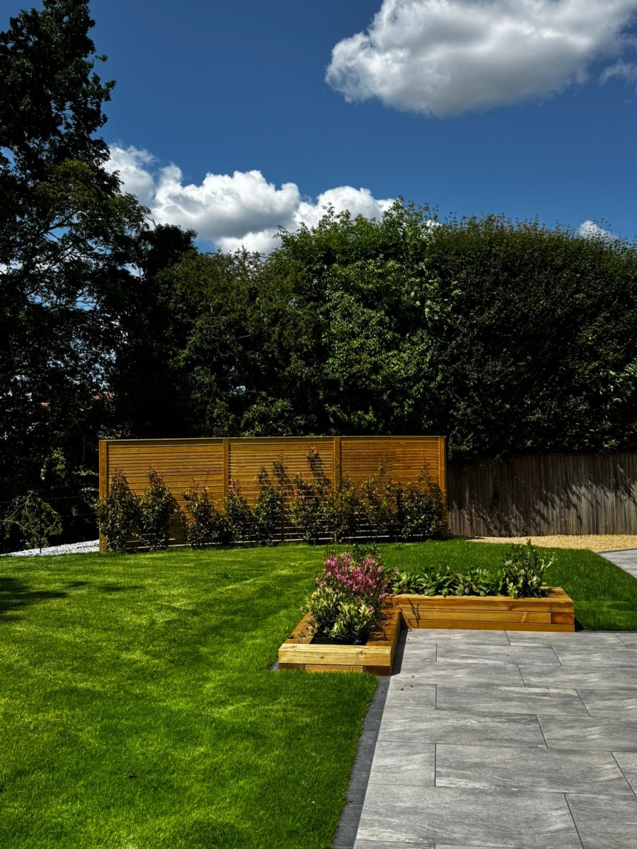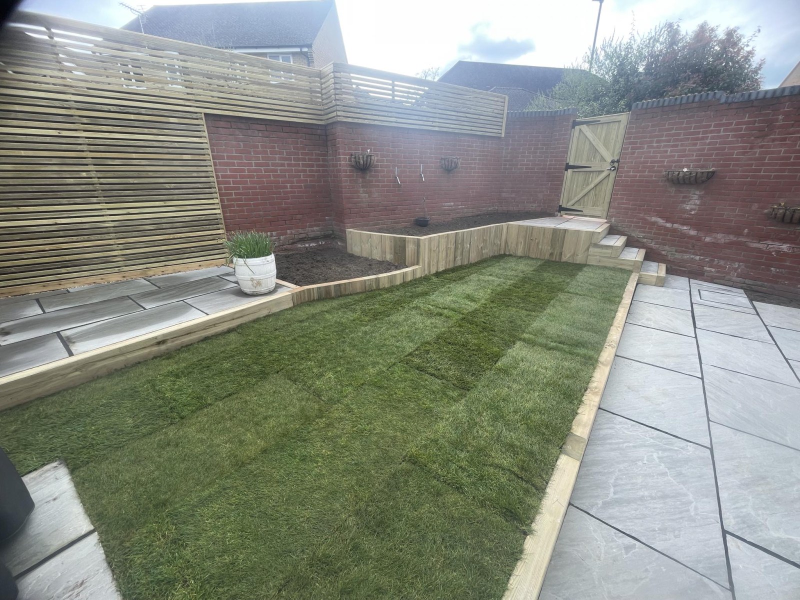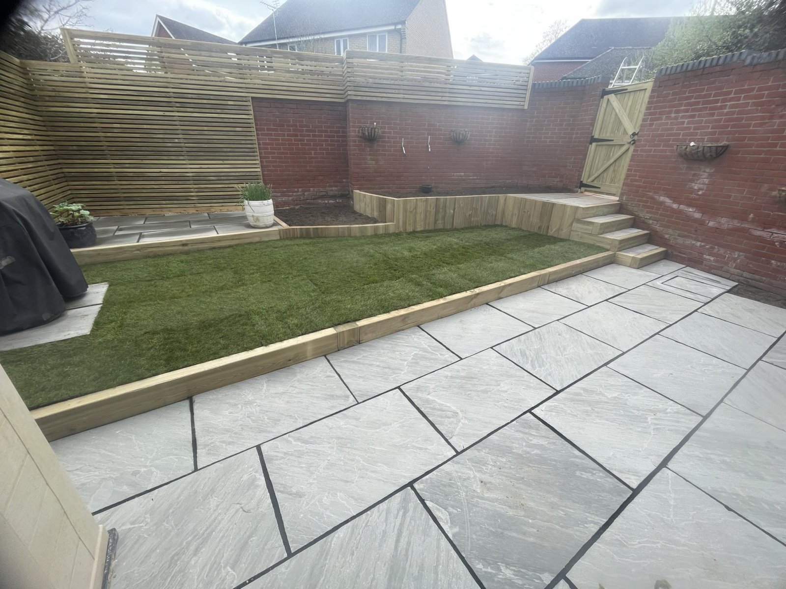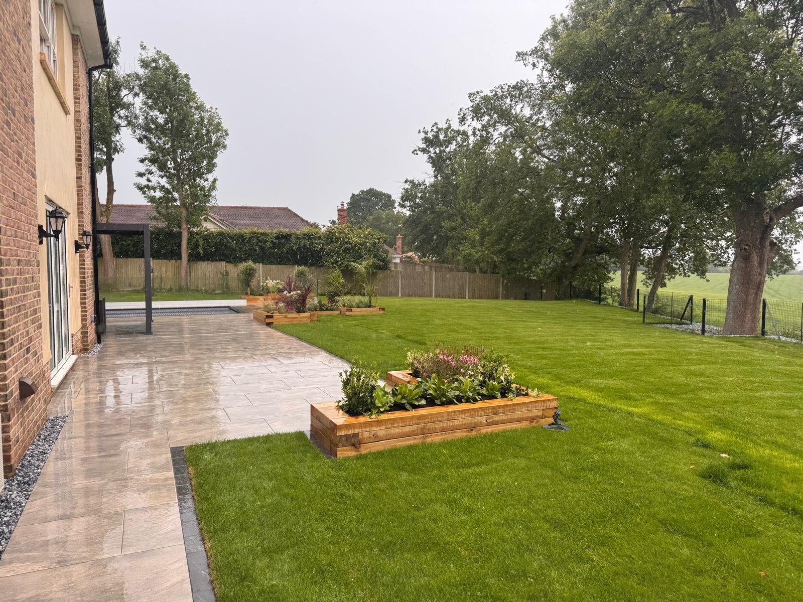 Our past work includes bespoke patio designs, lush planting schemes, lawn installations, and structural features such as decking, fencing, and pathways.