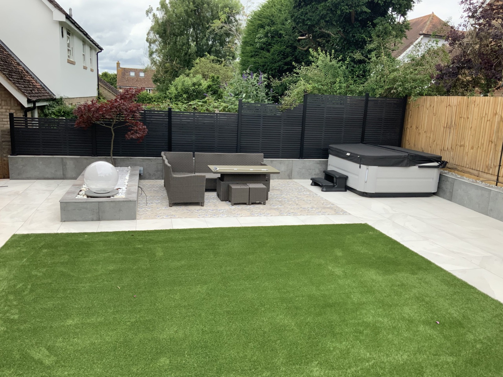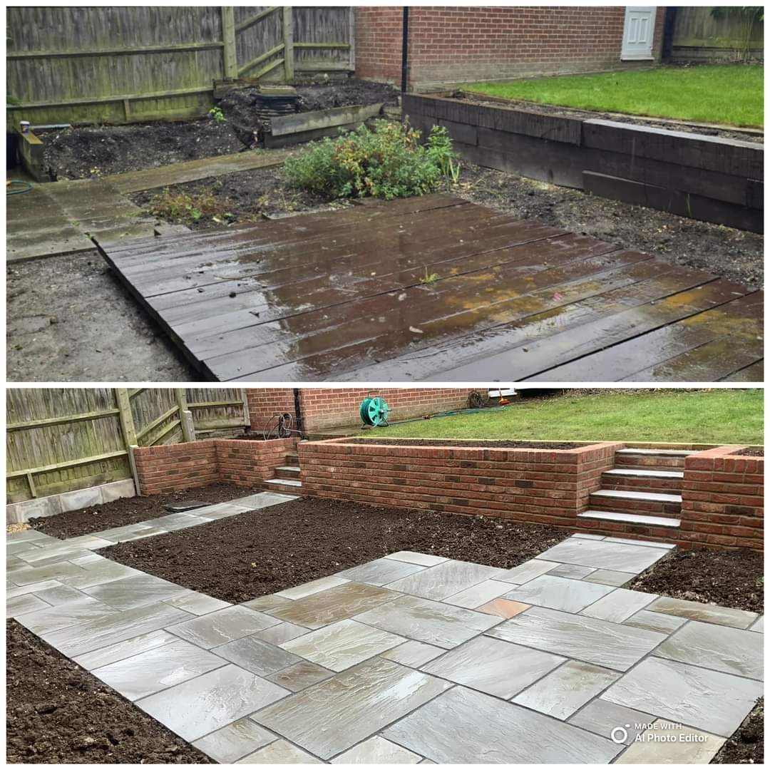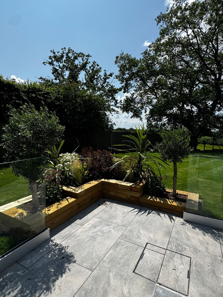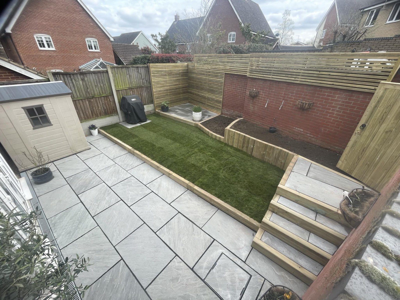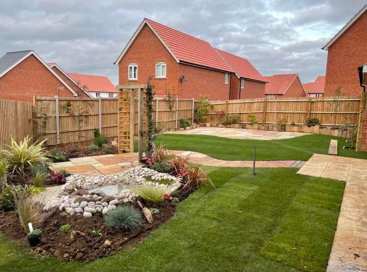 Our past work includes bespoke patio designs, lush planting schemes, lawn installations, and structural features such as decking, fencing, and pathways.