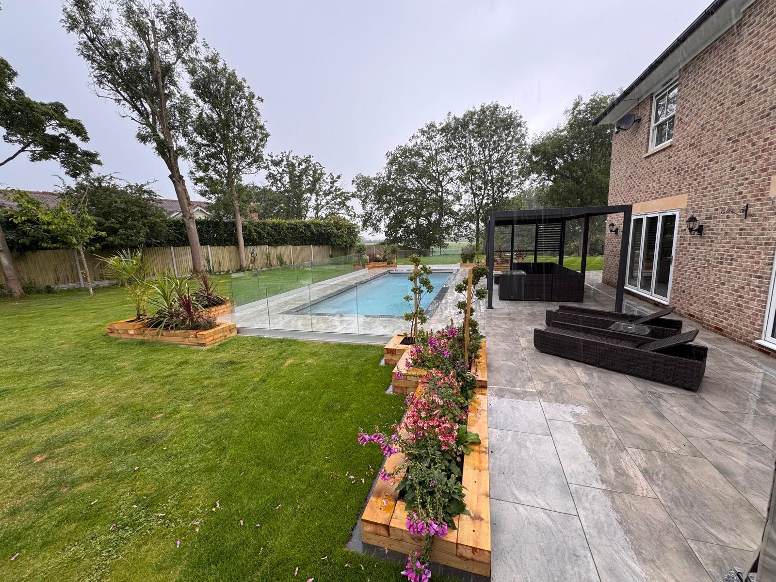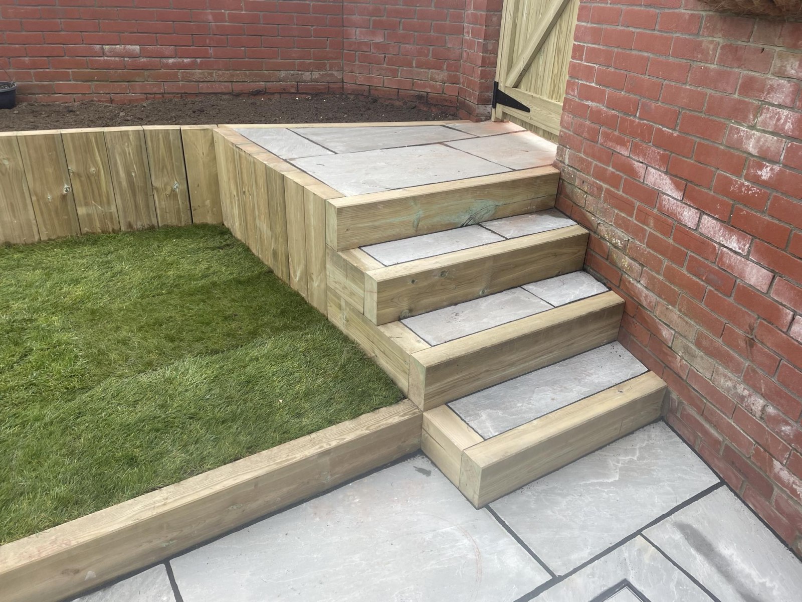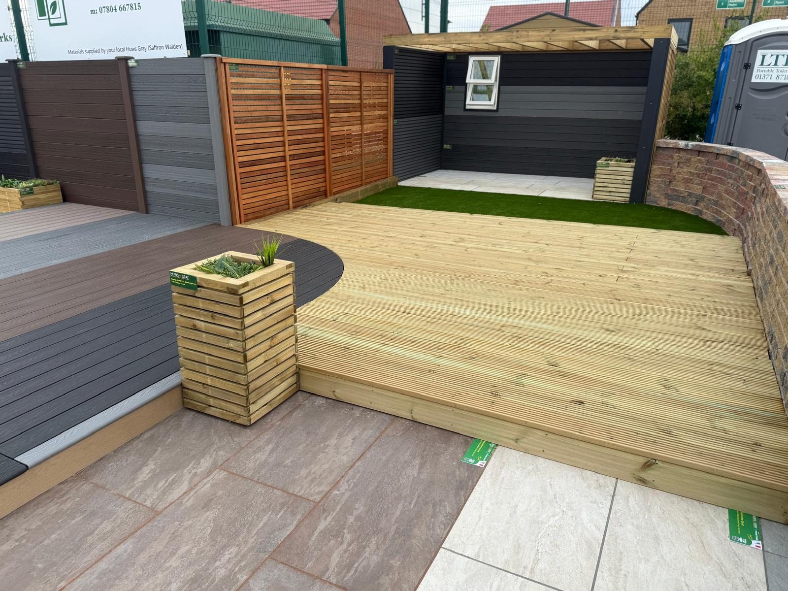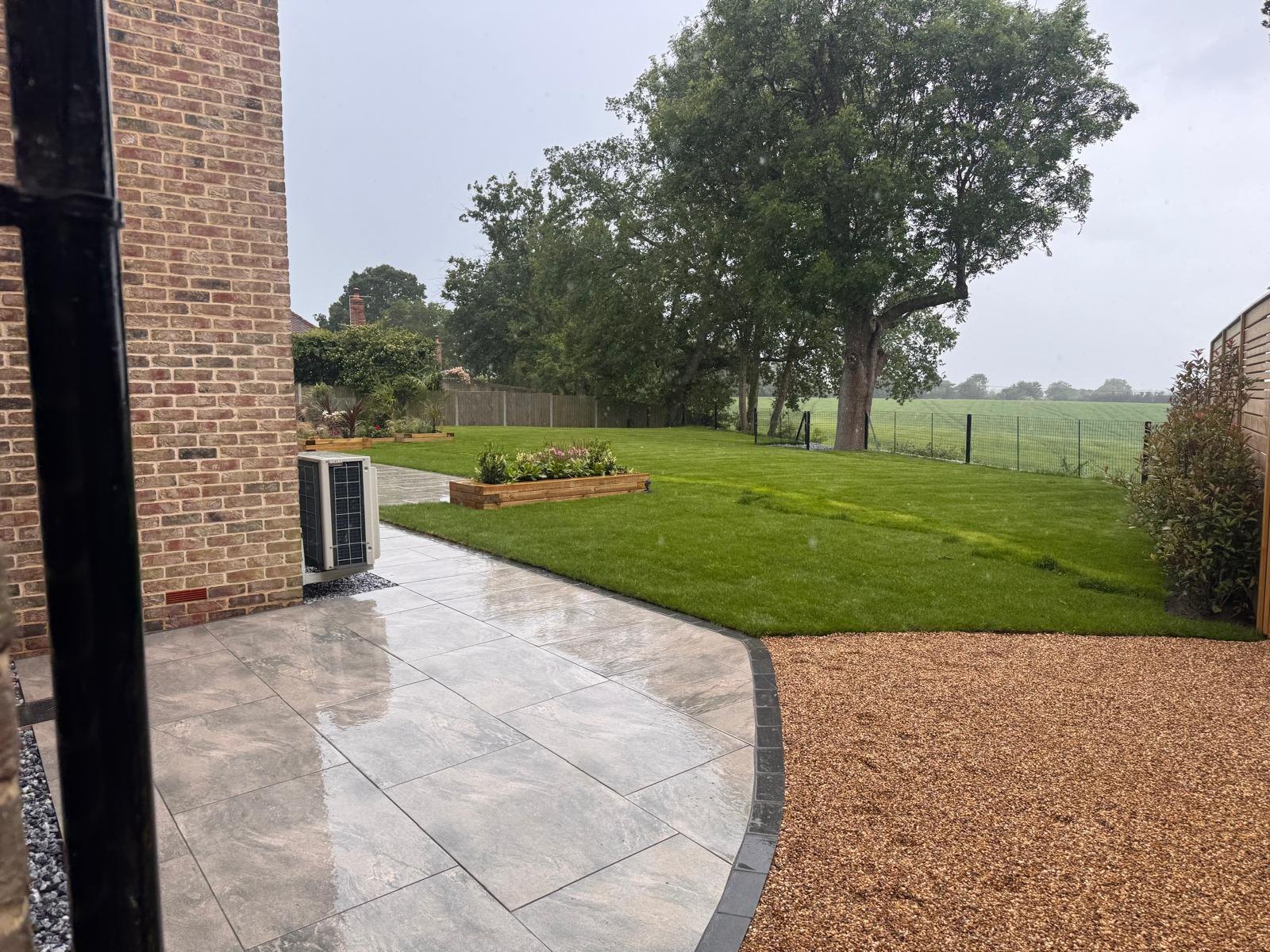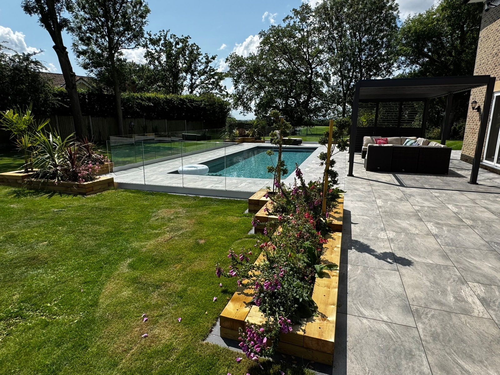 Our past work includes bespoke patio designs, lush planting schemes, lawn installations, and structural features such as decking, fencing, and pathways.
