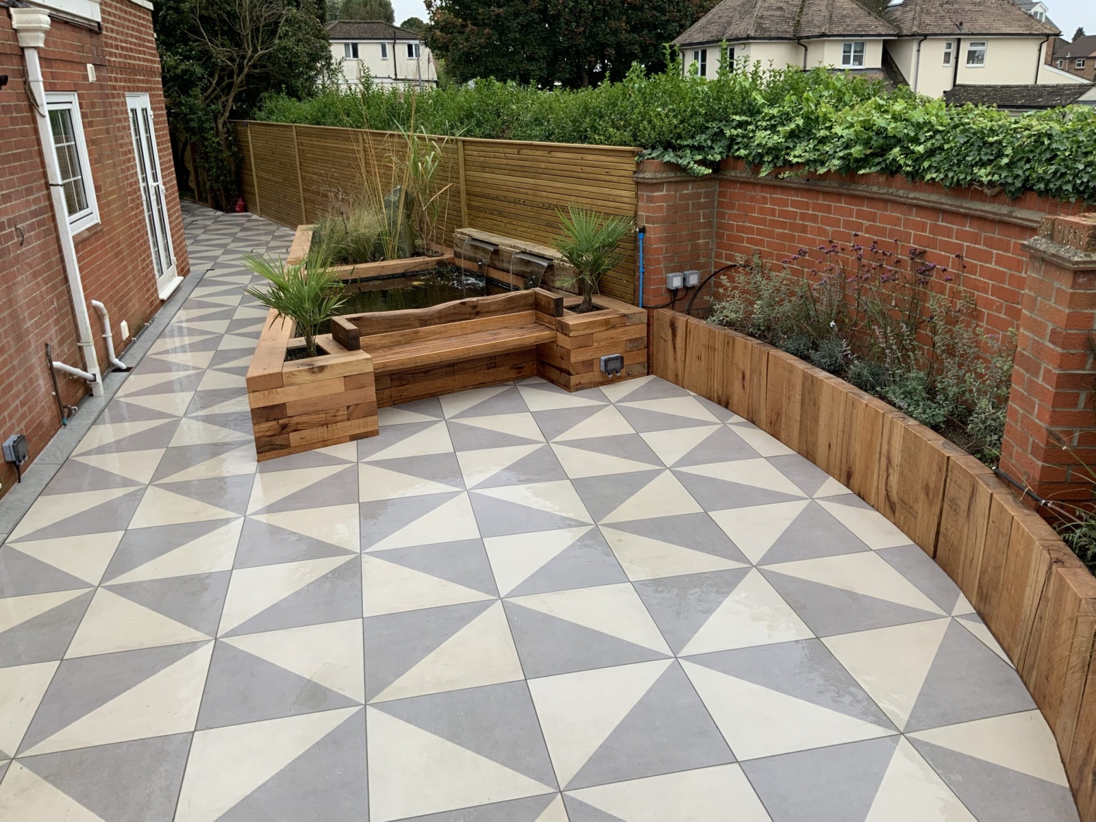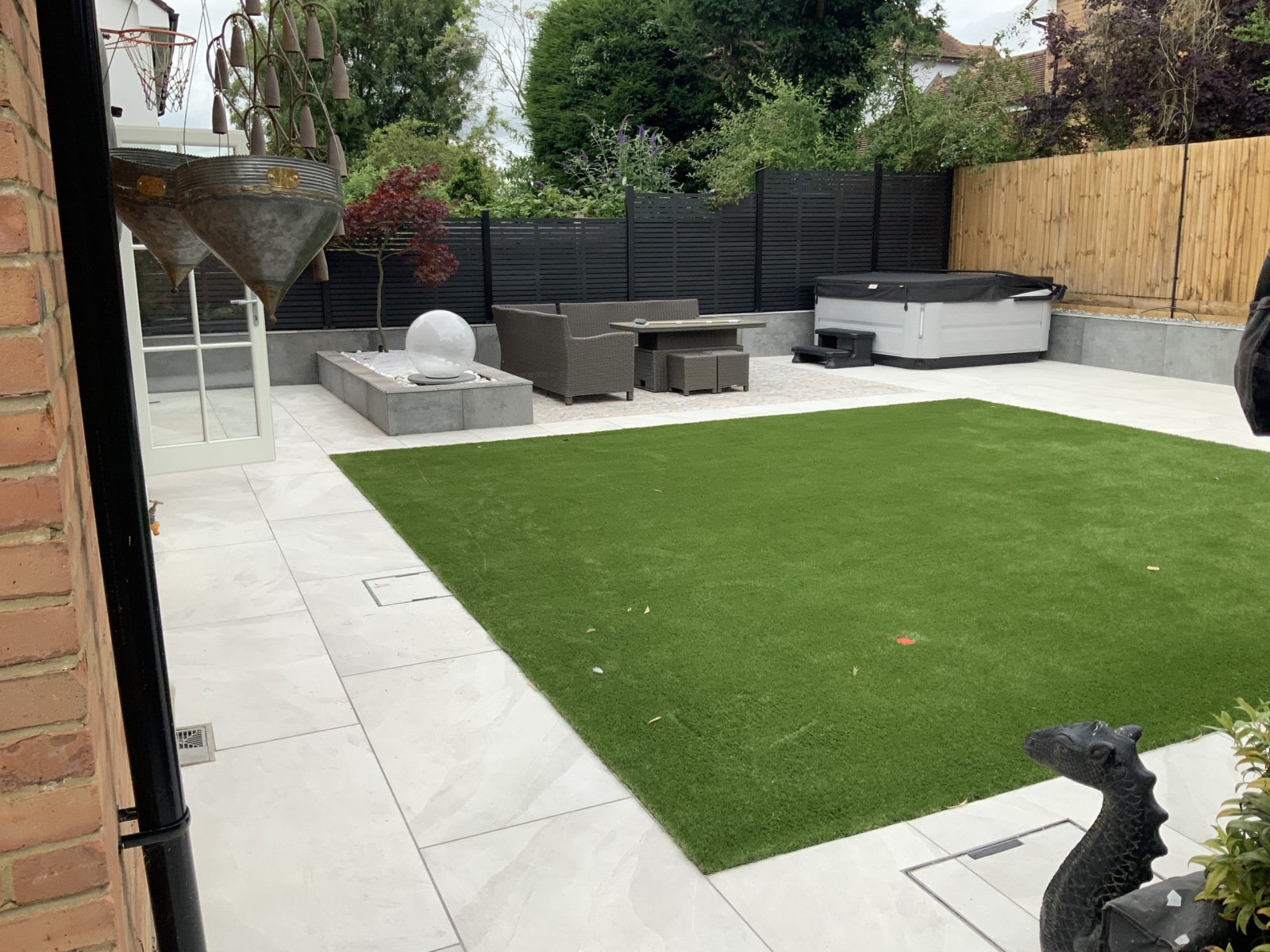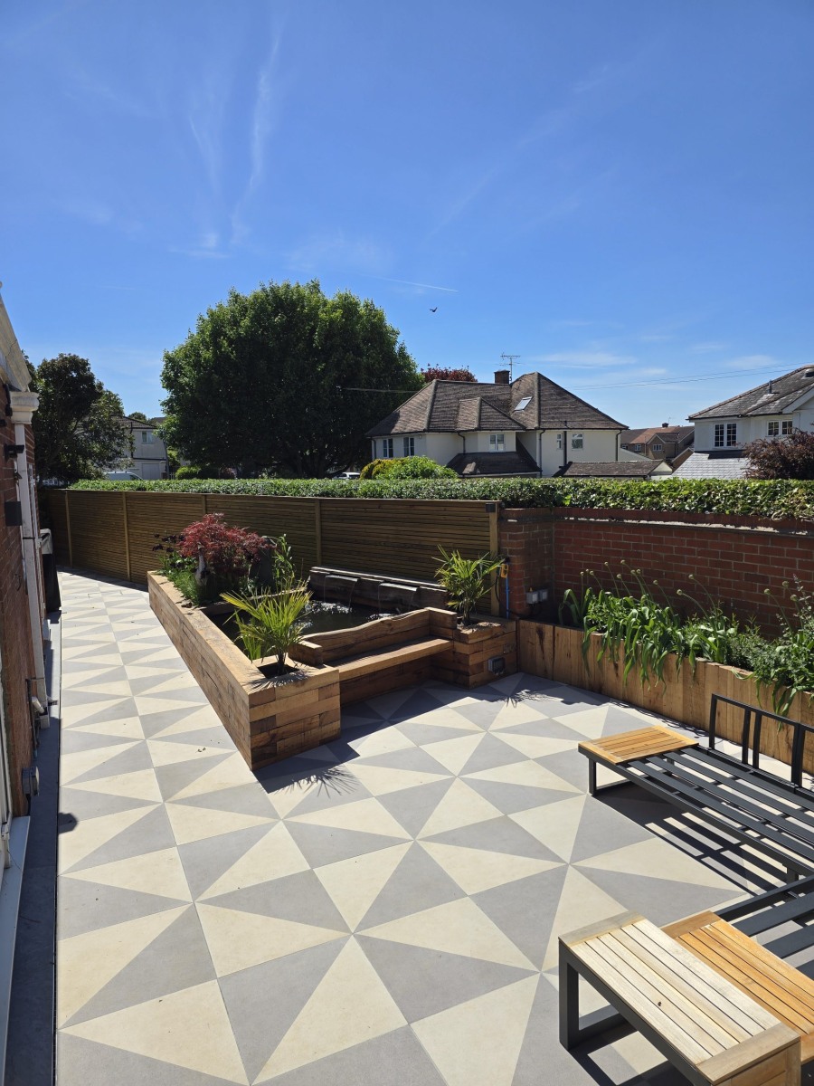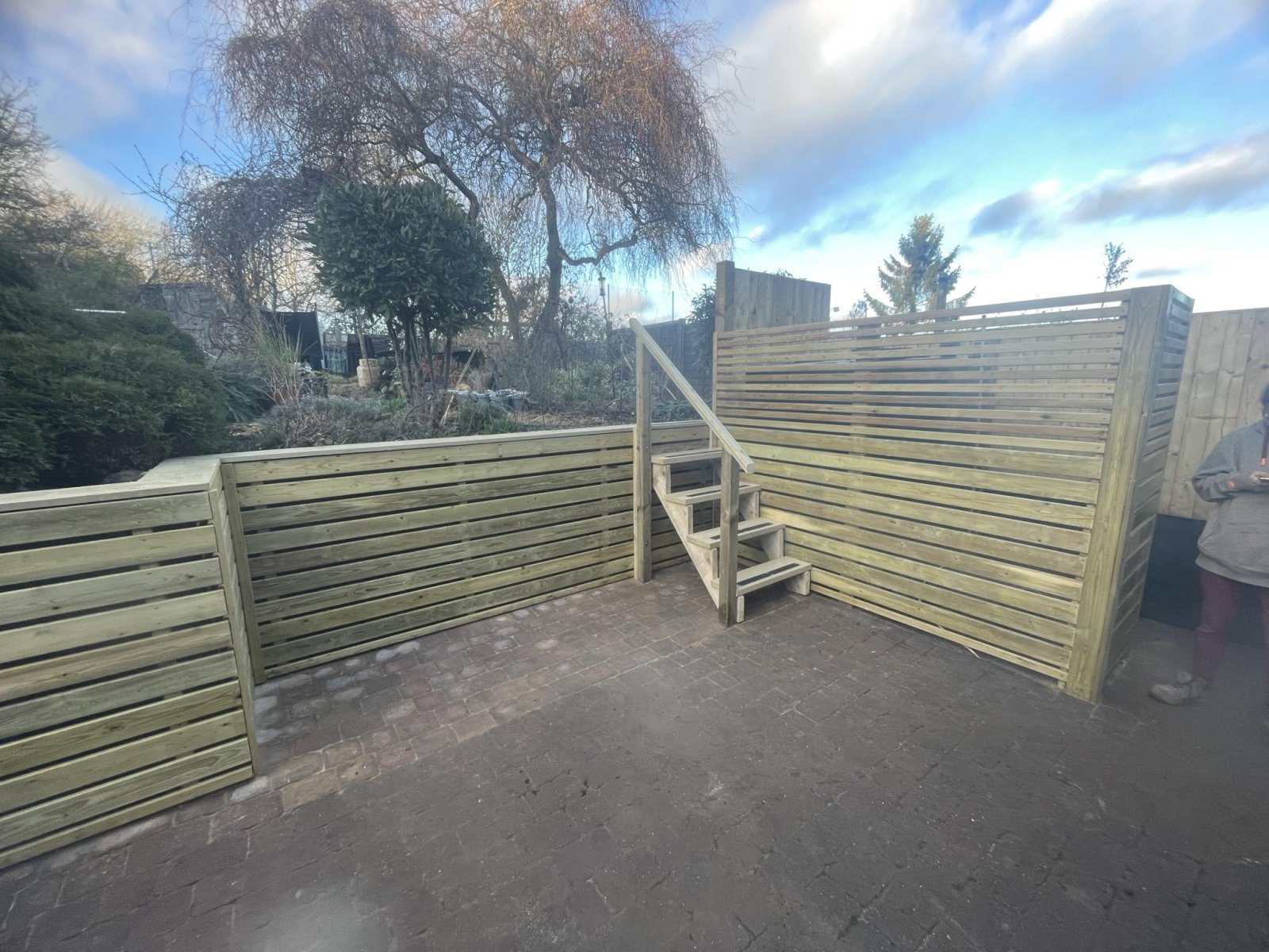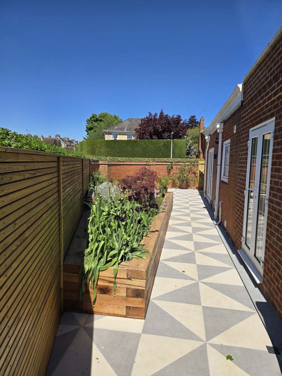 Our past work includes bespoke patio designs, lush planting schemes, lawn installations, and structural features such as decking, fencing, and pathways.