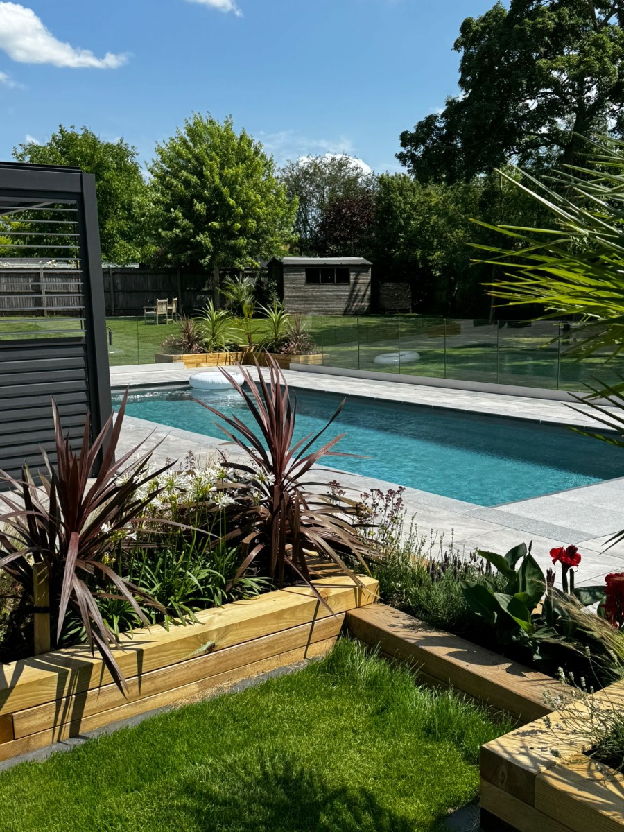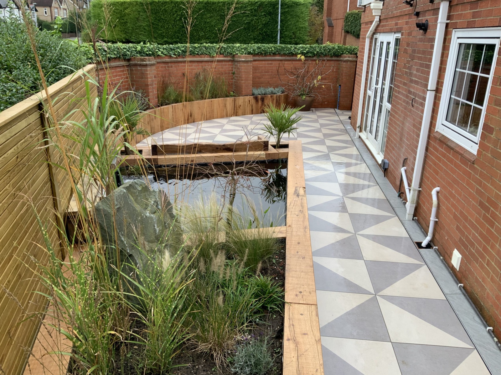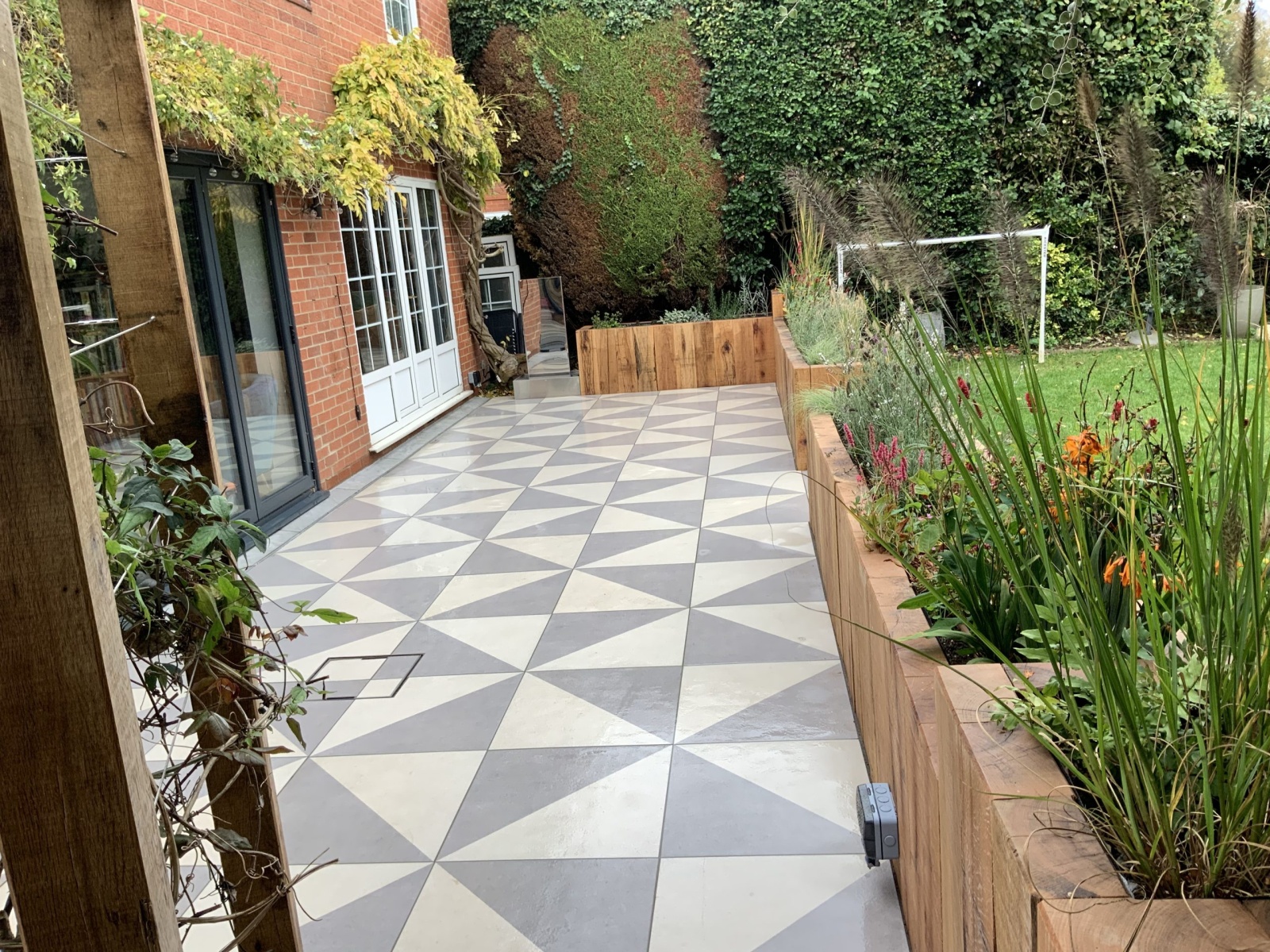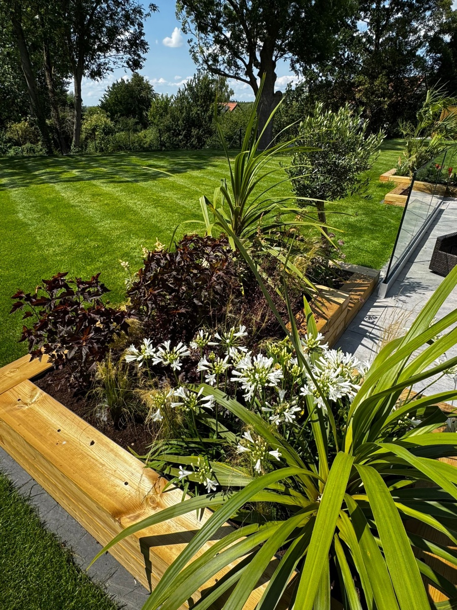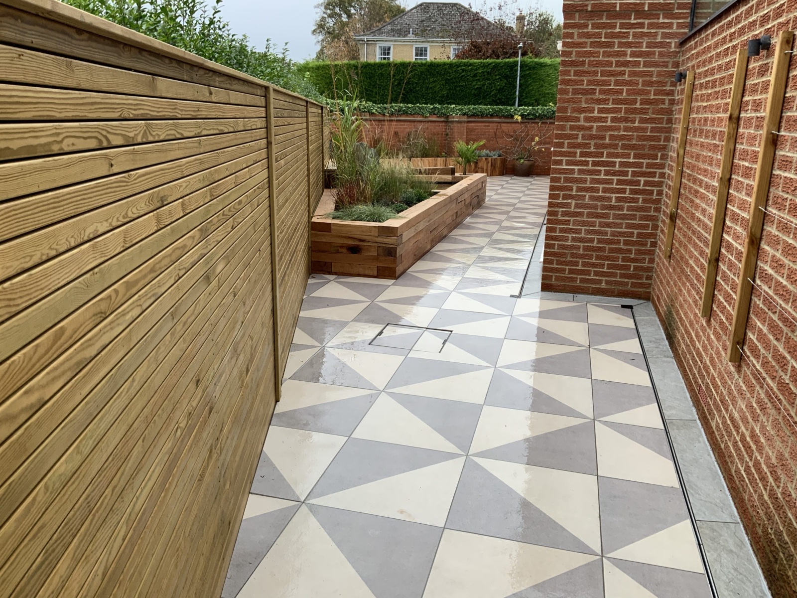Our past work includes bespoke patio designs, lush planting schemes, lawn installations, and structural features such as decking, fencing, and pathways.